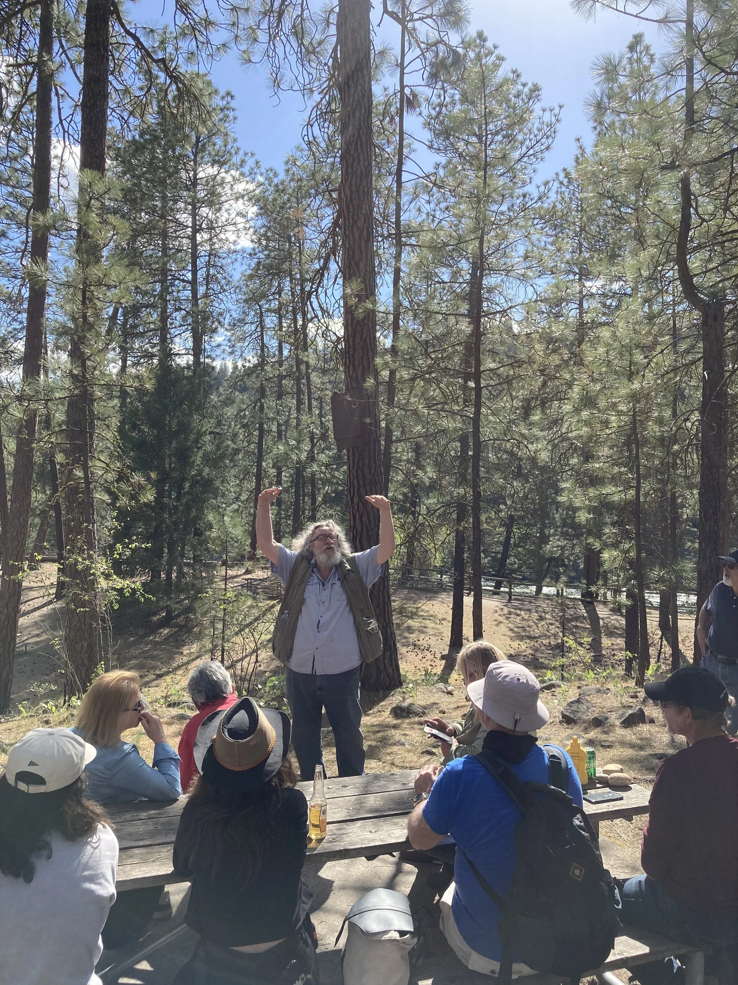 Randall pointing out the cataclysmic geological features at Dry Falls, 03 May 2021. Photograph: David Mathisen