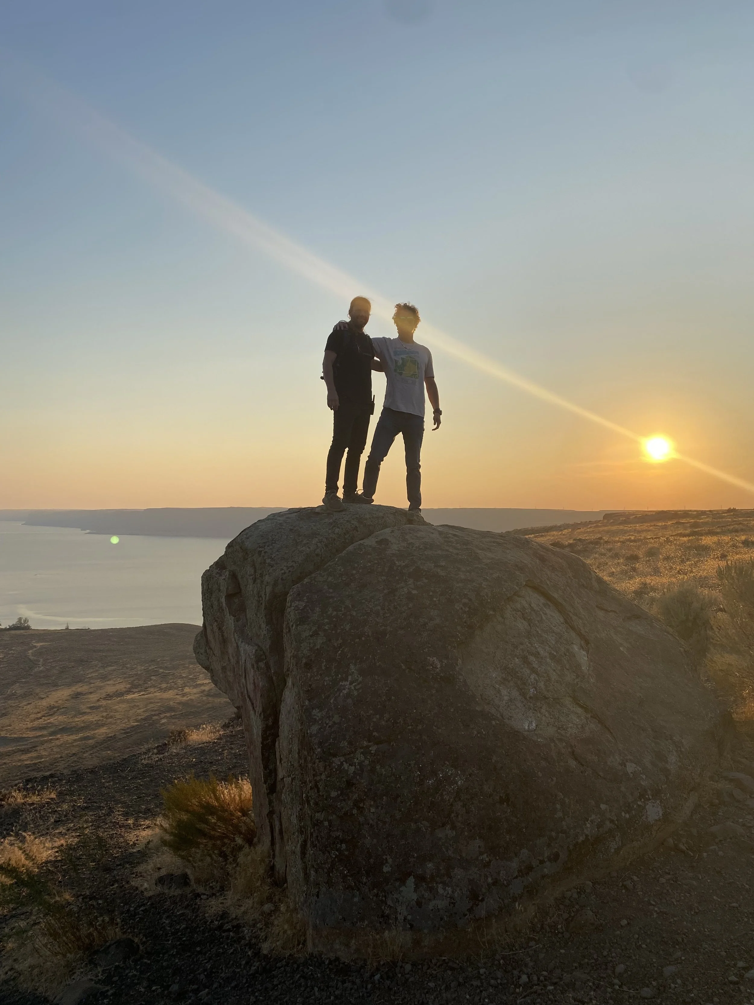 Sunset on the final day of this year's event, Kyle and myself atop a boulder left at the very top of Steamboat Rock, Upper Grand Coulee.