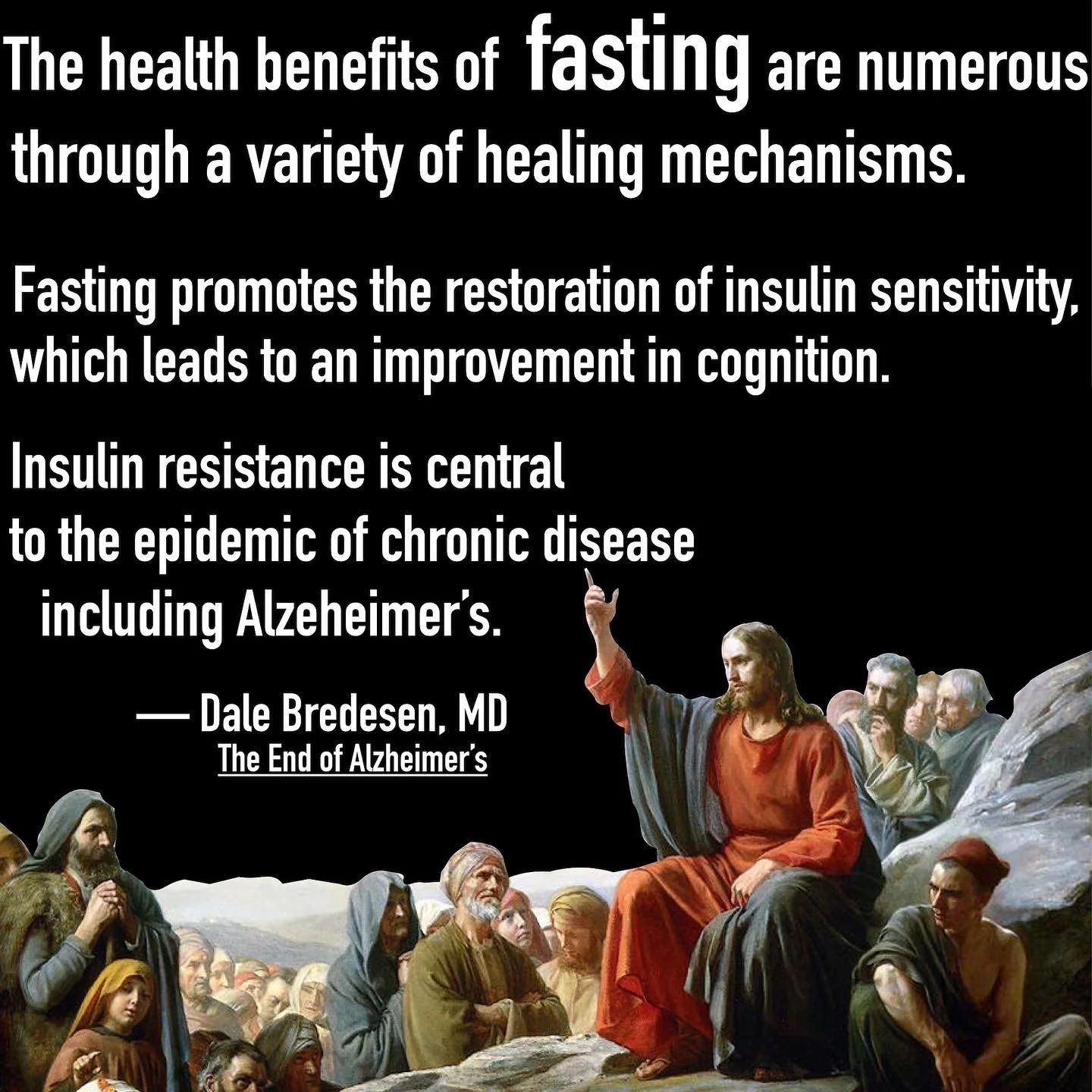 Thus, the fact that fasting helps to (among other things) restore insulin sensitivity becomes extremely important, especially now that the modern western diet has caused insulin resistance to become an epidemic, with severe impact on human health (Dr. Bredesen notes that in 1976, about 5 million Americans were diagnosed as diabetic -- whereas today the number is over 100 million).